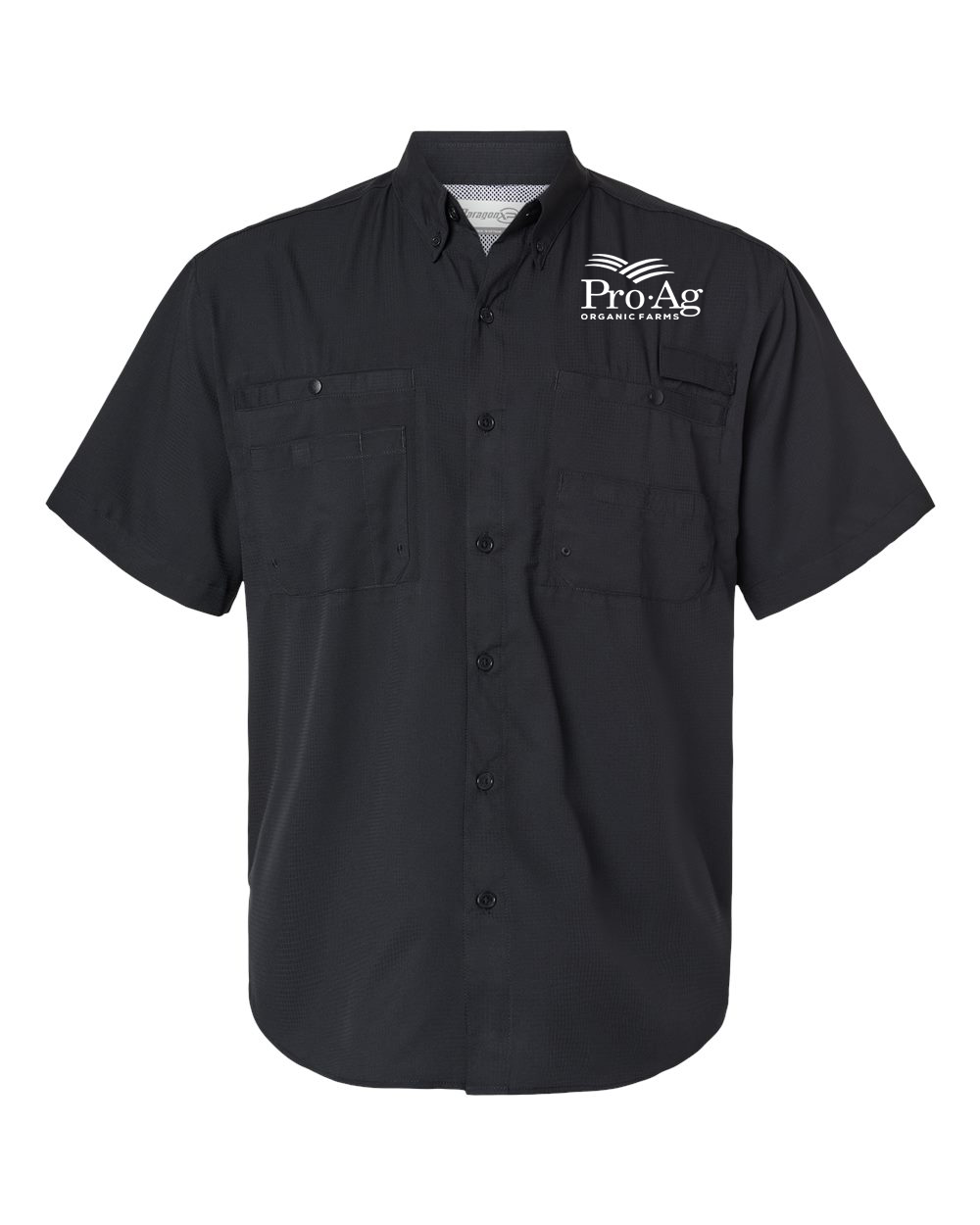 - Logo: left chest above pocket